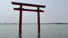 水面に映る鳥居は、現世と神域をつなぐ静かな境界線のよう。